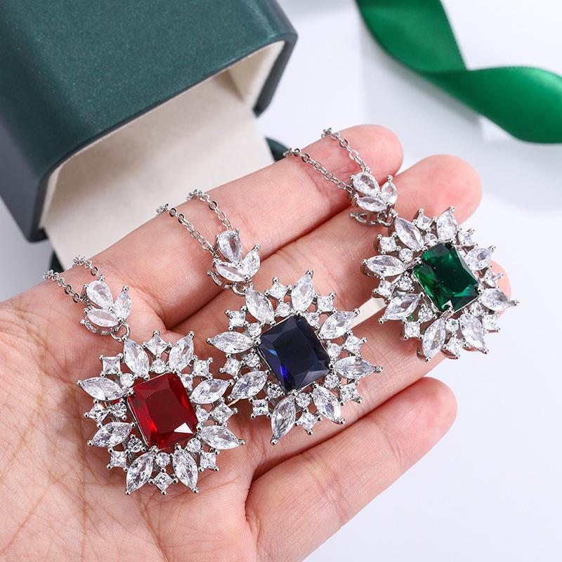 Gold-Plated Temperament Heroine Stone Luxury Square Pendant Necklace Colored Treasure Simulation Copper Bottom Old Money Style