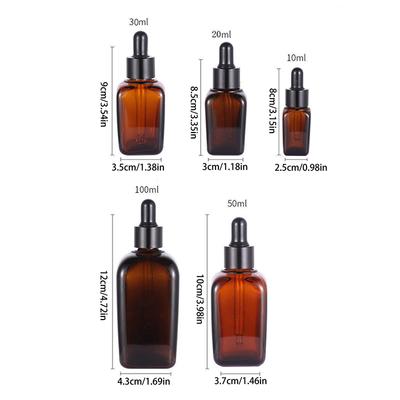 1/5Pcs Essential Oil Bottle Square Brown Glass Dropper Liquid Reagent Container Travel Perfume Bottle Diy Sample Bottle Cosmetic