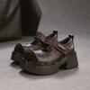 Johnature Genuine Leather Thick Soled High Heels Pumps Fashion Round Toe Women's Platform Shoes