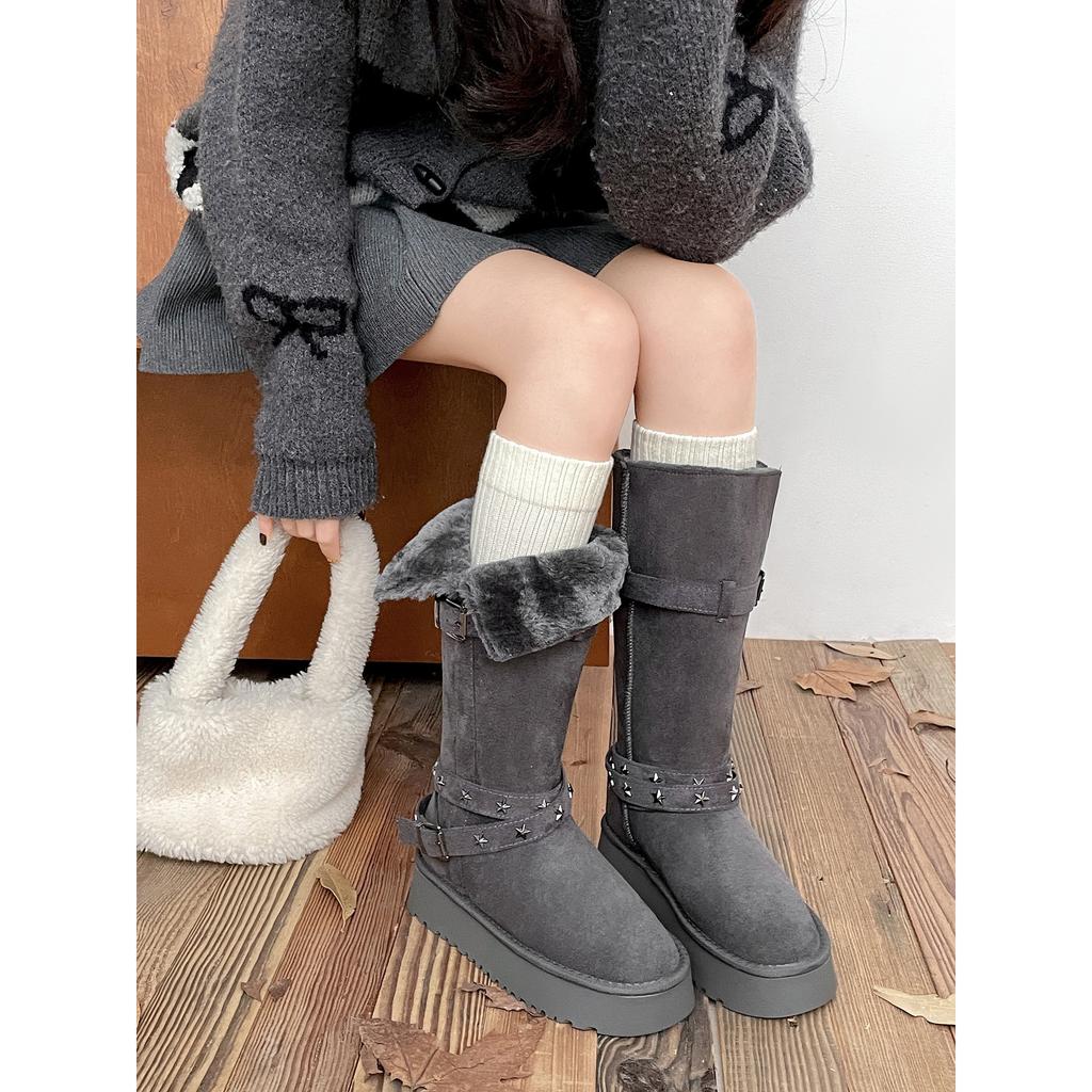 grey velvet thickened non-slip thick-soled long-tube snow boots women's winter warm retro cotton shoes