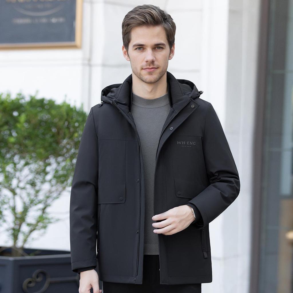 Men's 2025 Winter Removable Liner Down Jacket: Thick Warm White Duck Down Business Casual Coat