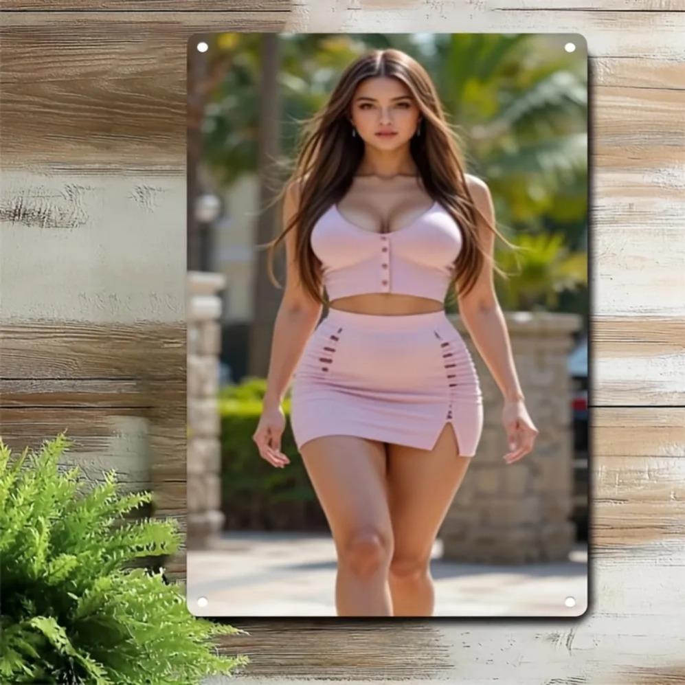 Βίντατζ Μεταλλική Πινακίδα Τοίχου Ρετρό Pin Up Κοπέλα Διακόσμηση για Μπαρ Καφέ Γραφείο Σπίτι Δώρο