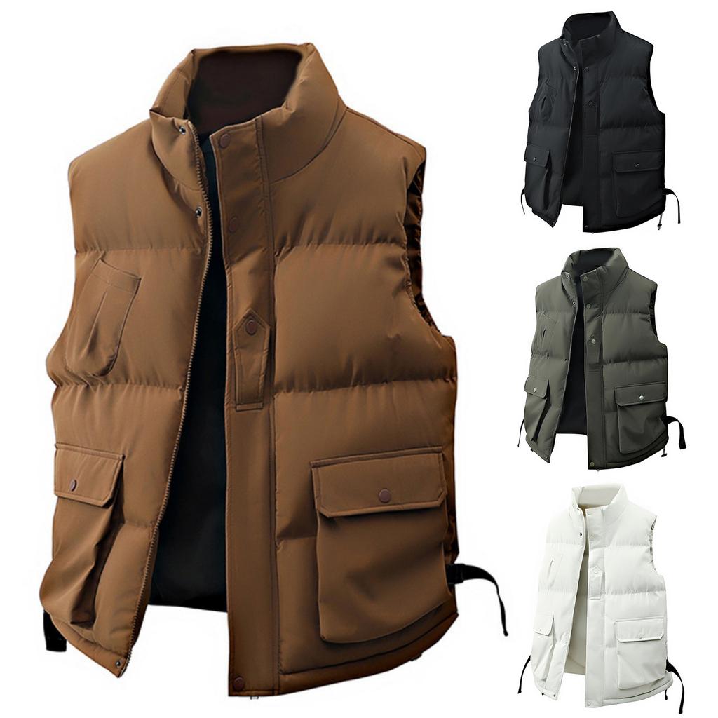 Men's -color Casual Stand-up Collar Vest, Men's Loose Workwear Sleeveless Jacket Vest