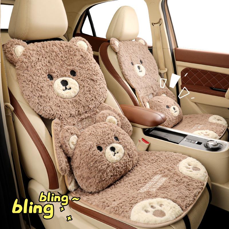 Cartoon 3D Bear Universal Car Seat Cushion Covers Plush Backrest for Autumn Winter Warm Cute Designed Seat Accessories