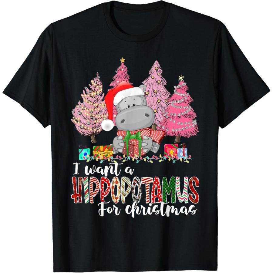 I Want A Hippopotamus For Christmas Xmas Hippo for Kid Women T-Shirt(3)