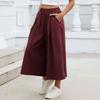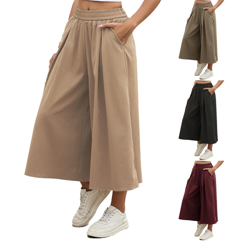 Women's Fashion Color Loose Wide Leg Pants Elastic Waist Pockets High,Waisted Skirt Pants