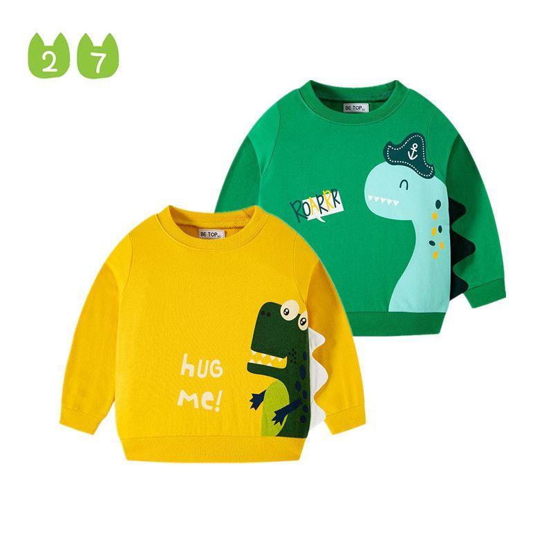 Spring and Autumn Cartoon Dinosaur Terry Sweater Pure Cotton Children's Clothing