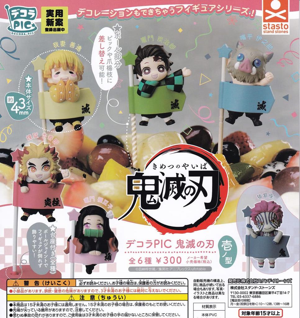 DecoraPIC is now available in Demon Slayer: Kimetsu no Yaiba! The pole part can be replaced with a pick or toothpick! ■Tanjiro Kamado ■Nezuko Kamado ■Zenitsu Agatsuma ■Inosuke Hashibira ■Kyōjurō Rengoku ■Akaza