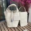 Foreign trade new vegetable basket bag swift cowhide with canvas splicing bucket bag fashionable casual hand bag