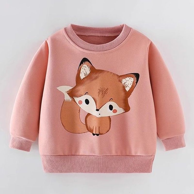 Girls' Sweatshirt, New Autumn Style, European and American Children's Pink Fox Long-Sleeved Bottoming Shirt, Beautiful and Cute Little Girl's Top
