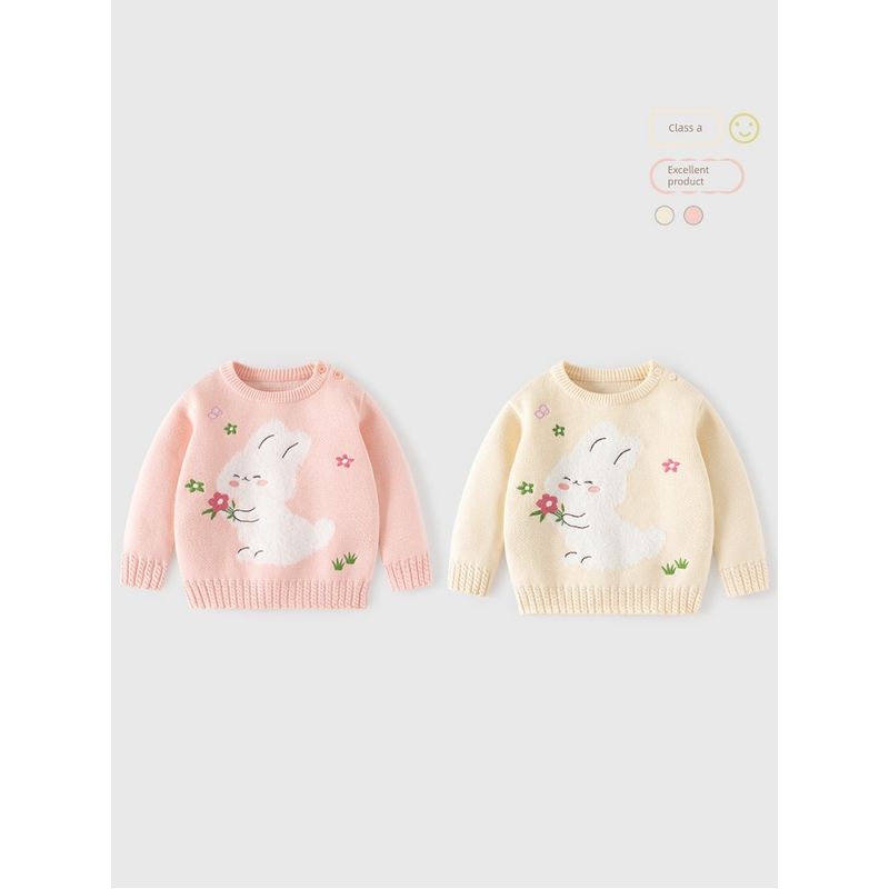 Baby Girl Bunny Clothes, Girls' Sweater, Autumn and Winter Pure Cotton Knitwear, Children's Long-Sleeved Pullover Knitwear