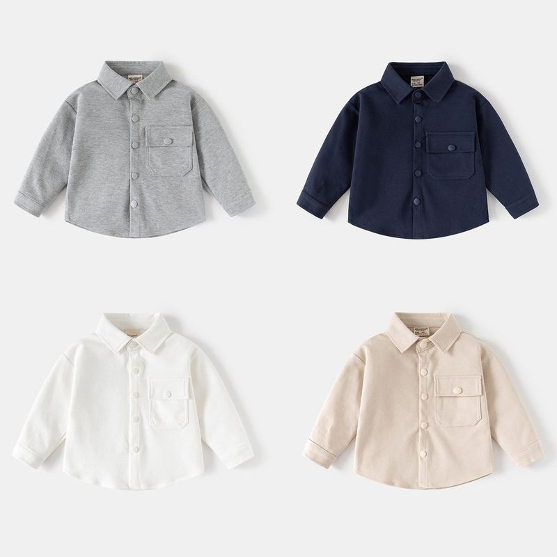 Boys' Long-Sleeved Shirt, Spring and Autumn Children's Solid Color Lapel Cardigan Shirt, Baby Children's Clothing, Casual Pocket Jacket