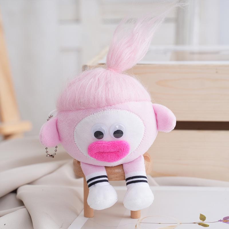 Creative Cute Sausage-Mouth Frizzy Braids Plush Keychain: Long-Haired Coal Ball Figure Doll Bag Charm