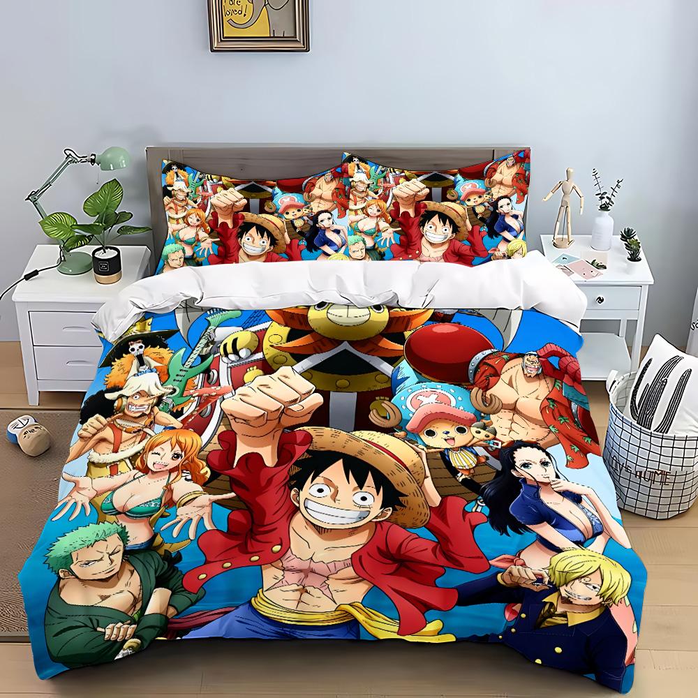 Anime Duvet Pillowcase Bedding Set Adult Boy Girl Bedroom O-One P-Pieces Decoration Children Gift Single Double Large Size