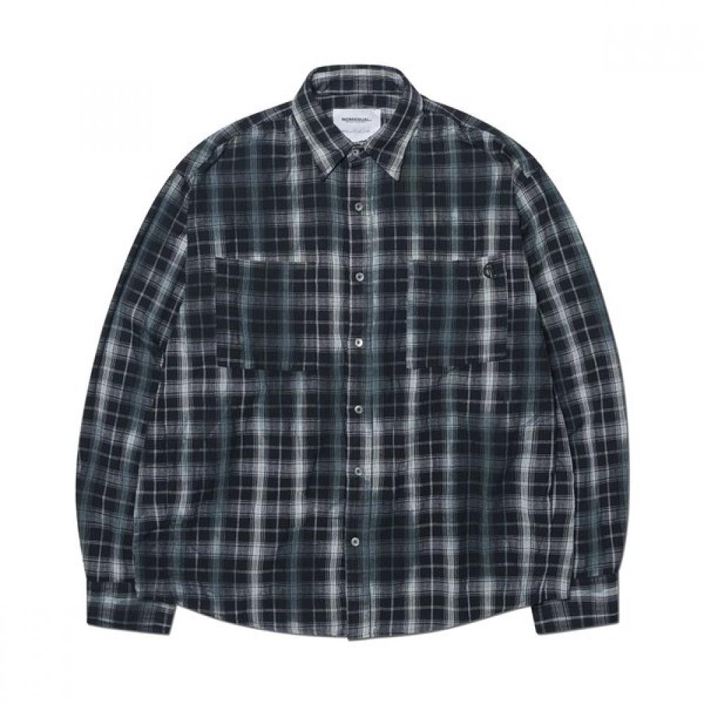 The O.D CHECK SHIRT - BLACK is a black color shirt featuring a check pattern from NOMANUAL.