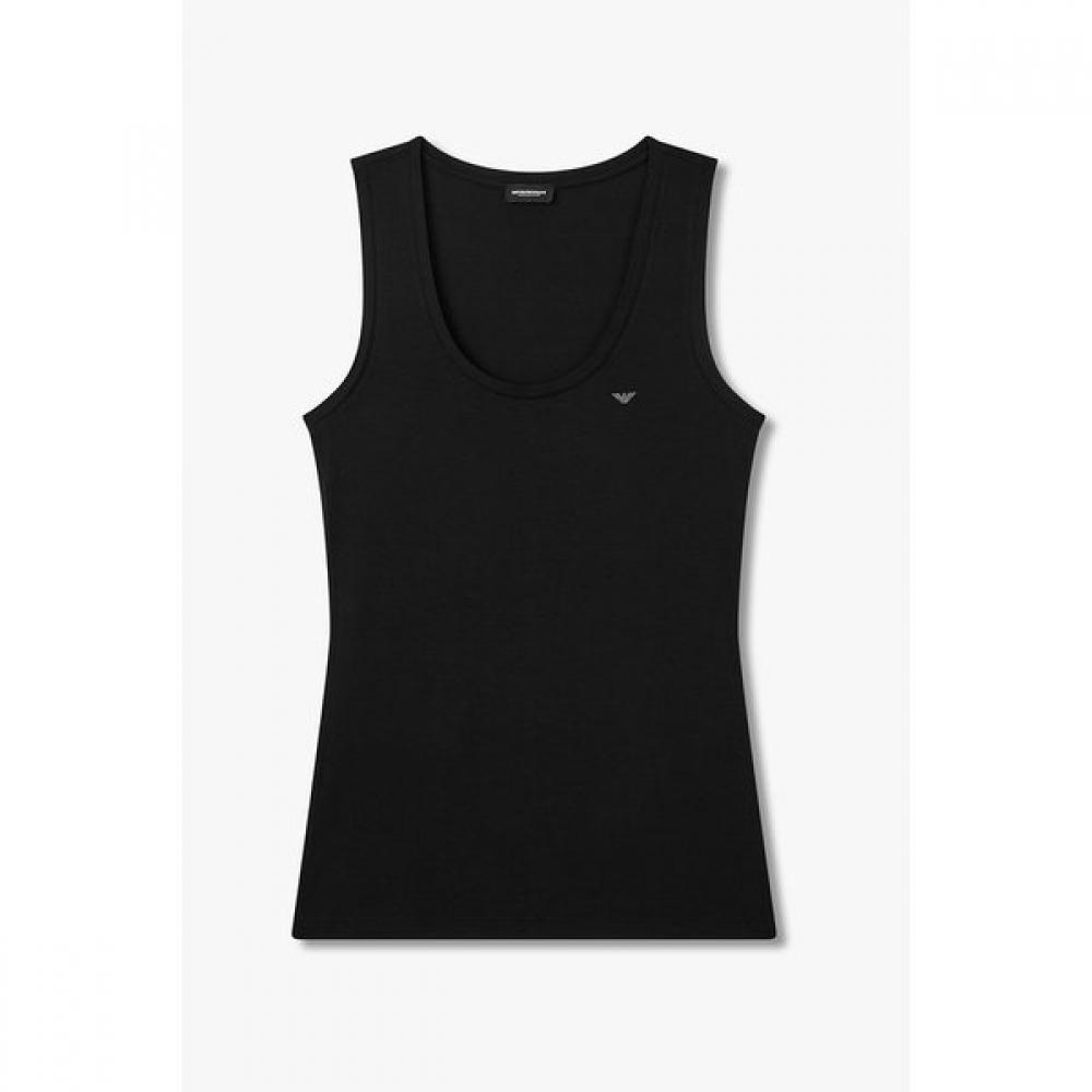 The EMPORIO ARMANI women's Biz Scoop Neck Tank Top is made from soft rayon material, featuring a scoop neck design and a stylish Biz logo.