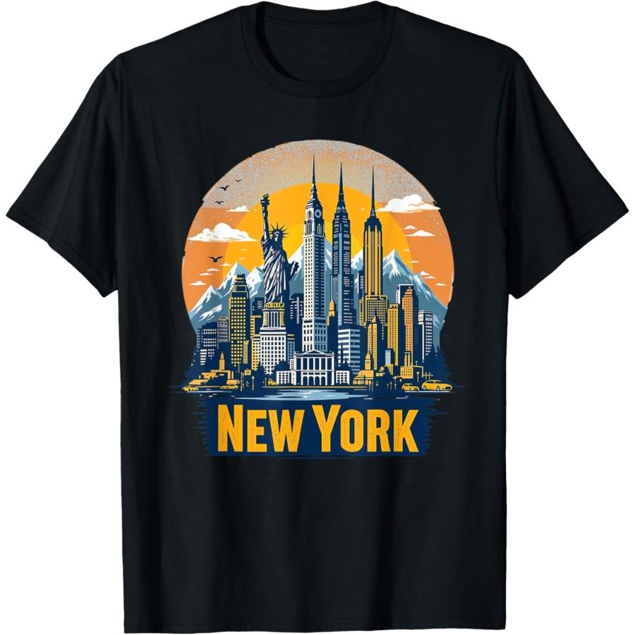 Retro NYC New York City Skylines Statue Of Liberty Vintage T-Shirt