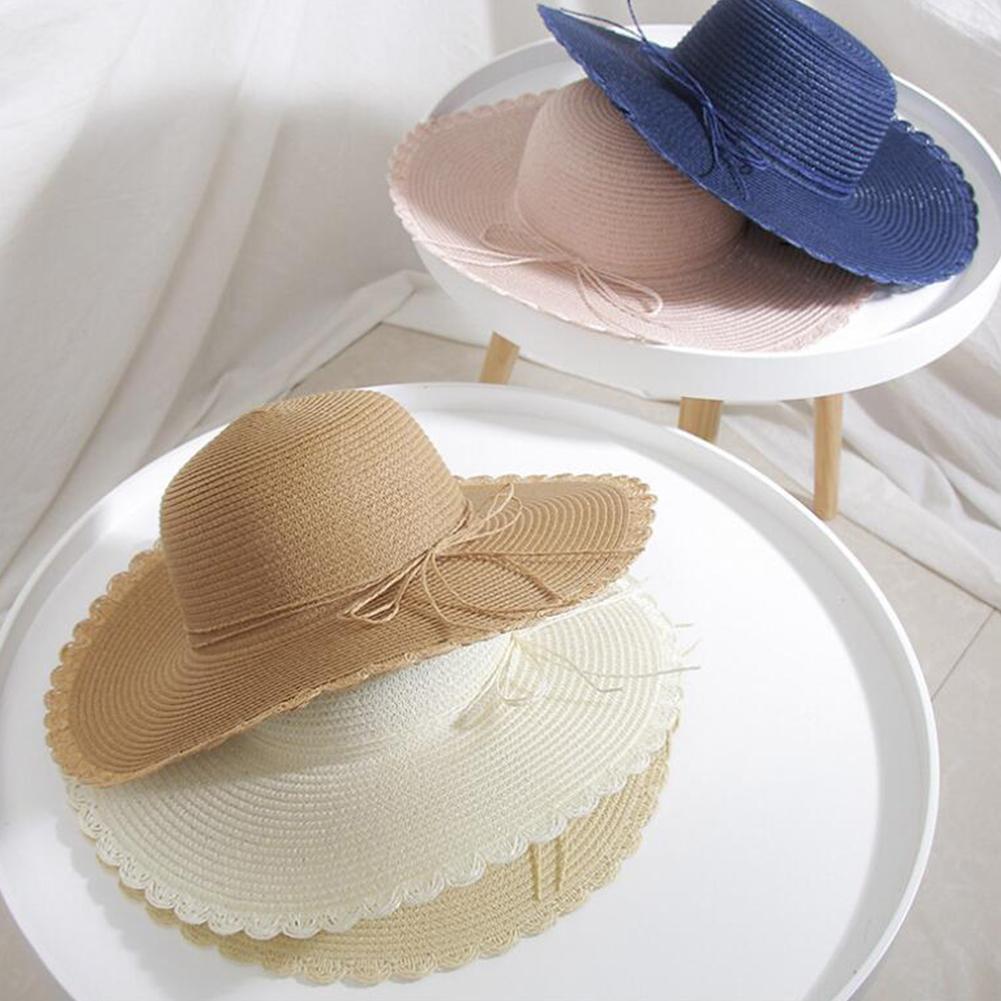 Women Summer Folding Sunscreen Wide Brim Cap with Bowknot for Seaside Beach