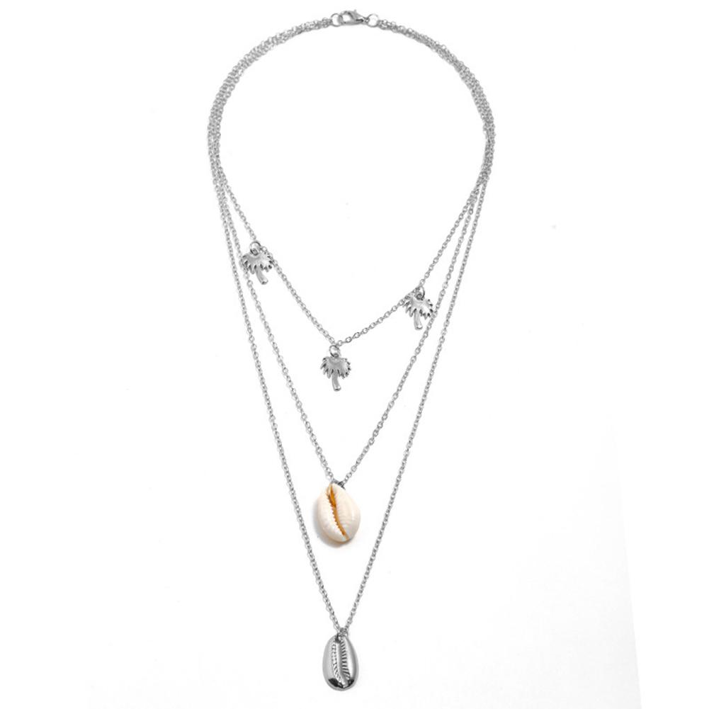 Women Unique Versatile Style Geometric Necklace Simple Shell Pendant Multi-layer Necklace