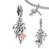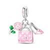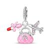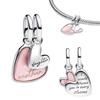 925 Silver Pink Blossom Dangle Charm Butterfly Heart Flower Rose Bird Bead For DIY Necklace Bracelet Fine Jewellery