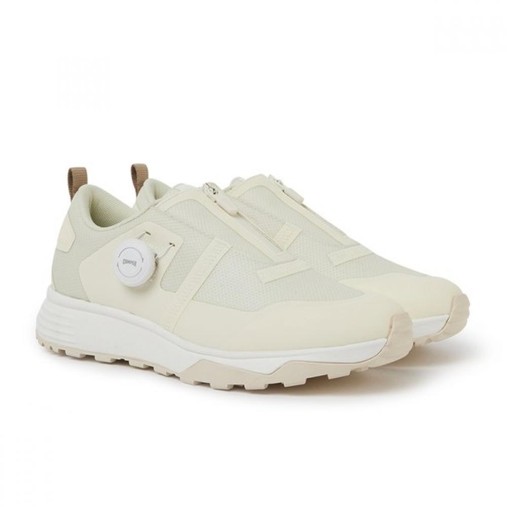 The Camper Women's Golf Shoes PINTION G200904-001 features a spikeless design that provides comfortable wear, and it can be adjusted to fit snugly around the foot with the Boa fit system. It is equipped with water-resistant features, ensuring stable wear in various weather conditions. The upper part is reinforced with double support, enhancing durability.