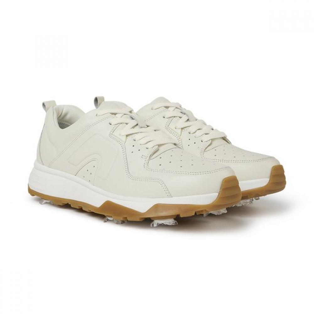 Camper Men's Golf Shoes CADDIE SPIKE G100901-001 is a spiked golf shoe for men that applies a soft midsole for comfort. Inspired by 90s sneakers, it features a lightweight design made of ivory white premium leather. Equipped with spikes for excellent grip, it provides comfort on the golf course.