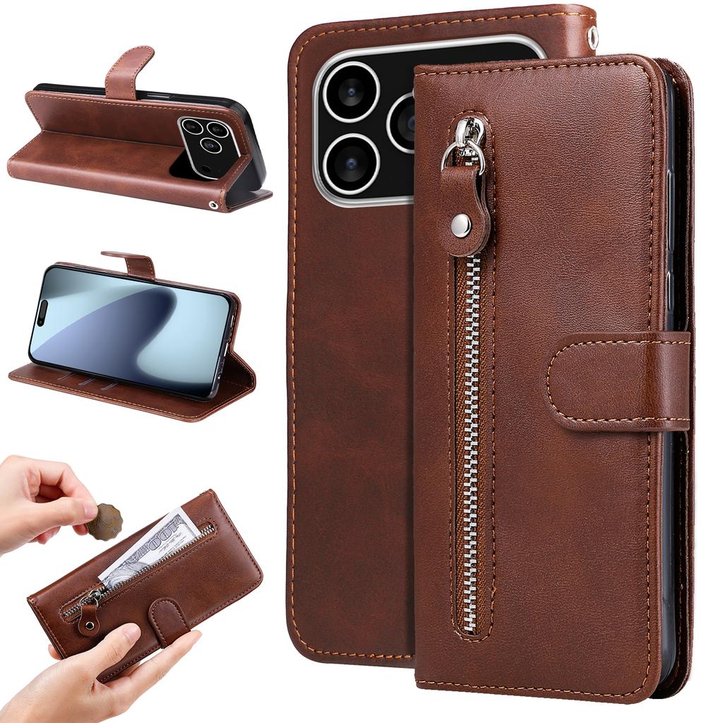 For iPhone 17 Pro PU Leather Cases with Zipper Pocket Wallet Phone Cover Stand