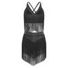 Γυναικείο Κοστούμι Performance Χορού Salsa Latin V Λαιμόκοψη Αμάνικο Σταυρωτή Πλάτη Κρόσσια Crop Top Φούστα με Επίπεδα Κρόσσια