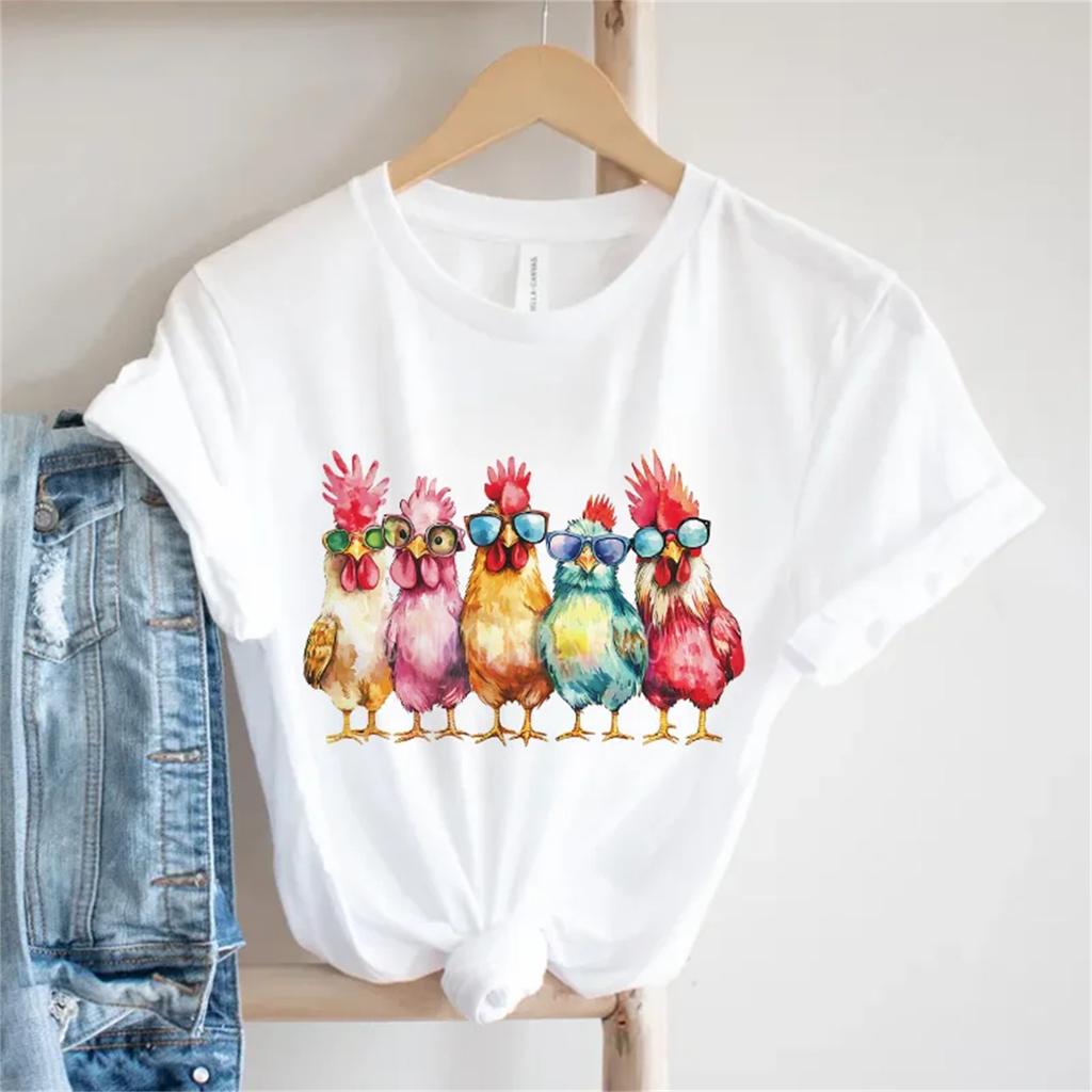 Fashion Cartoon Animal Pattern Printed Women's Harajuku Versatile T-Shirt Casual Style Round Neck Fun Short Sleeved T-Shirt