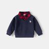 Spring new Korean version of boys' fake two-piece sweater children's shirt collar jacket baby V-neck top children's clothing