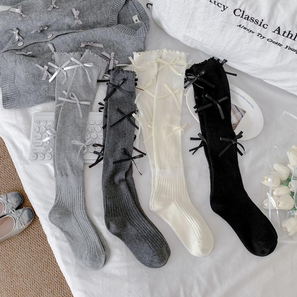In The Early Autumn Of 2025, New Products, Fungus Edge Calf Socks, Bow Splicing, High Tube Solid Color Jk Knee Socks, Stacking Socks