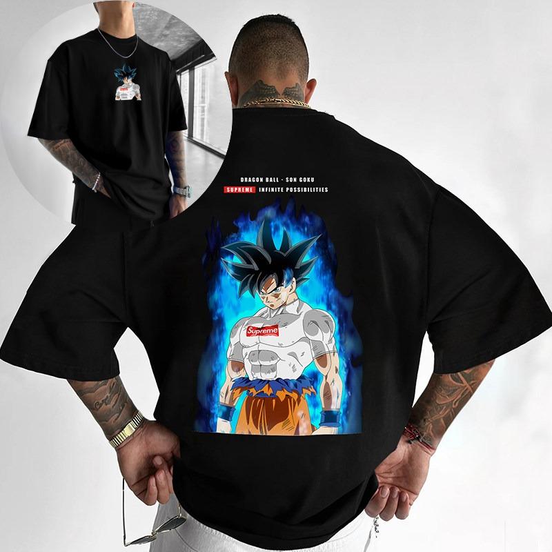 Japanese Dragon Ball Guku Printed Digital Direct Spray Loose Heavy Cotton Short Sleeved Tshirt Mens Summer Tshirt Top
