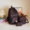 3 Pcs/Set Fashion Large Capacity Bow Backpack Nylon Adjustable Strap Student Backpack Bow Print School Bag