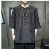 Men's Chinese Style Round Neck Half Sleeve Shirt Frog Button Textured Casual Top for Daily