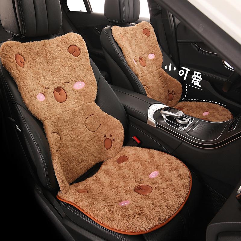 Cartoon Cute Capybara Winter Plush Car Seat Cushion for Cadillac CT5, Aoge XT4, XT5