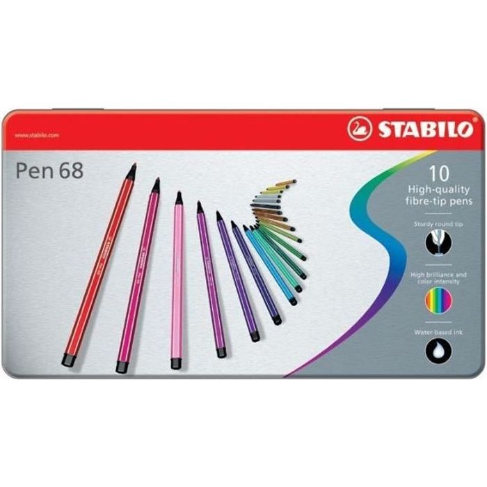 Feutre de coloriage - stabilo - pen 68 - boîte métal - 10 pièces - pointe moyenne bloquée