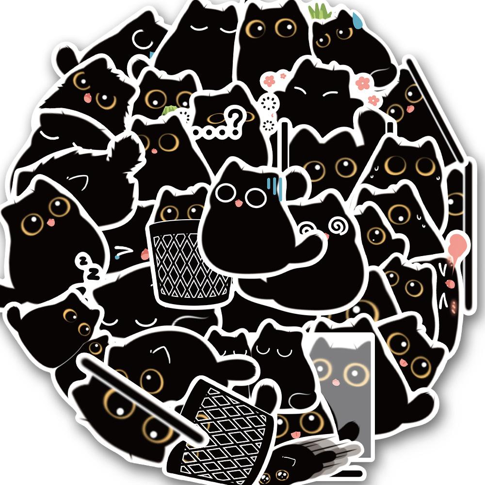 40PCS Black Cat Cute Stickers Vintage For DIY Notebook Guitar Scrapbooking Motorcycle Luggage Graffiti Decals Gifts For Children
