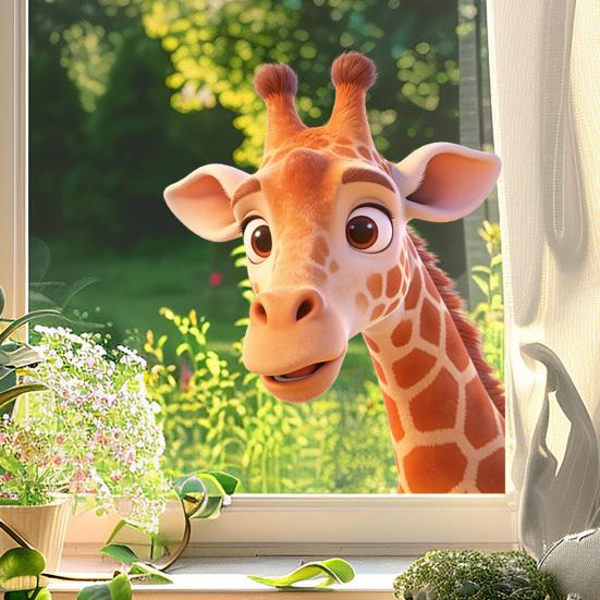 Cartoon Giraffe Window Clings Funny Waterproof Animal Glass Sticker Reusable Static PVC Decals for Living Room Bedroom Glass Door Decoration