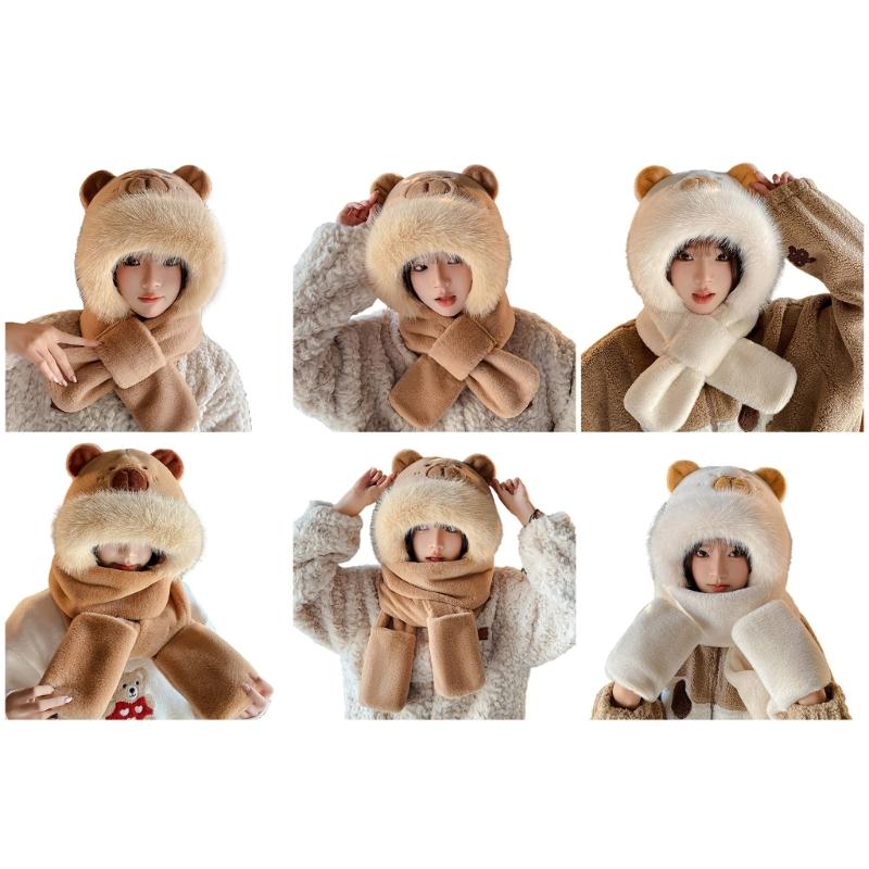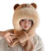Furry Cartoon Capybara Hat with Scarf Gloves Set Thicken Furry Hat Oversized Headgear Hat for Winter Commute
