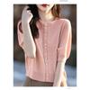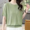 Summer New All Match Striped Knitted Short Sleeve Women's Half Sleeve Knitted Shirt Fashion V-neck Striped Top