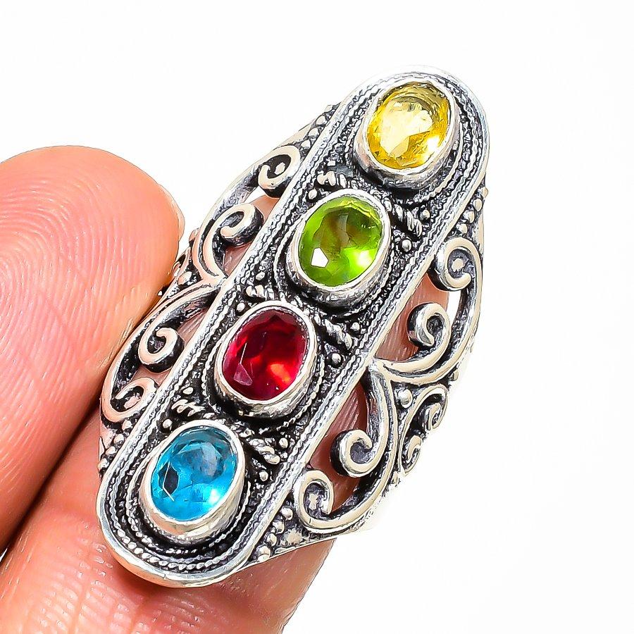 Natural Garnet, Citrine Gemstone 925 Sterling Silver Jewelry Ring Size 8 AR-16749