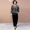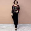 2PCS Pants Suts Spring Summer High-end Women's Printed Plus-Size Silk Blouse Velvet Pants Two-Piece Set Loose Flocked Velvet Blouse Velvet Pants Set