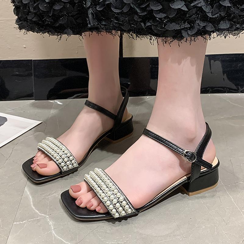 Γυναικεία Καλοκαίρι 2025 Μοντέρνα Σανδάλια Παπούτσια με Μεσαίο Τακούνι Γυναικεία Εξωτερικού Χώρου Σανδάλια με Περικνημίδα με Χάντρες Τετράγωνο Δάκτυλο Sandalias Chaussures Femme