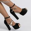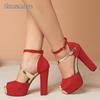 Elegant Peep Toe Fashion Heels for Ladies Ankle Straps Platform Sandals Women's Talons Suede Leather Party Dress Shoes Size35-43