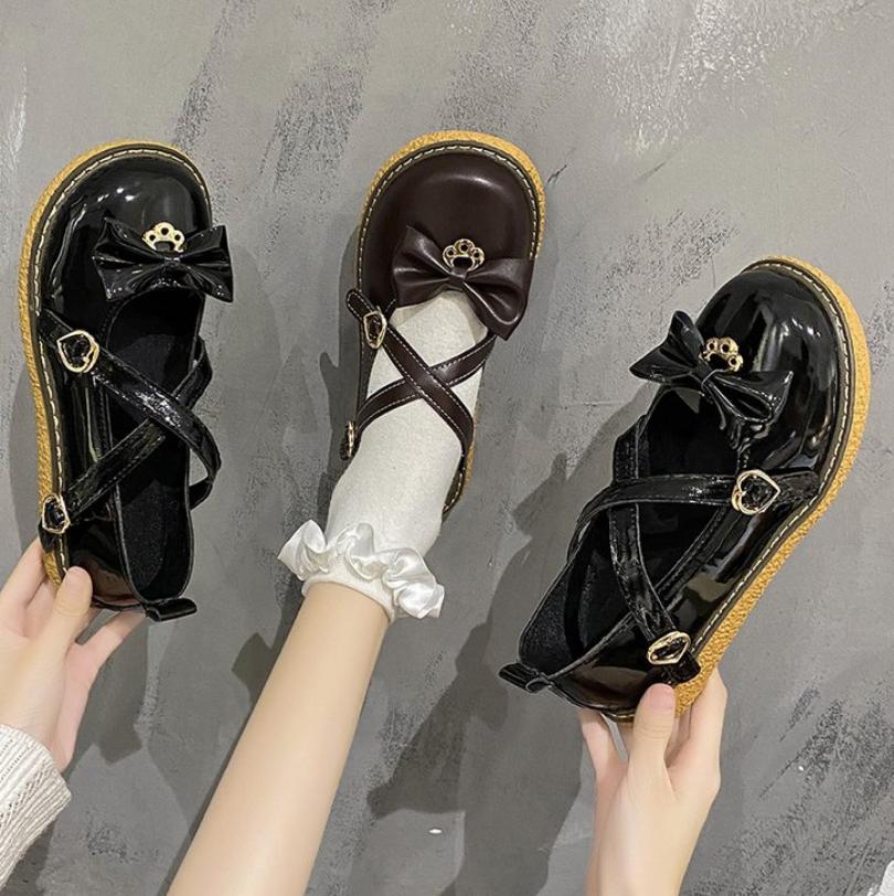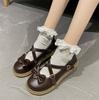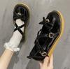 2025 Spring Autumn High Quality Women Lolita Shoes Fashion Round Toe Medium Heel Bow Knot One-Word Buckle Ladies Mary Jane Shoes