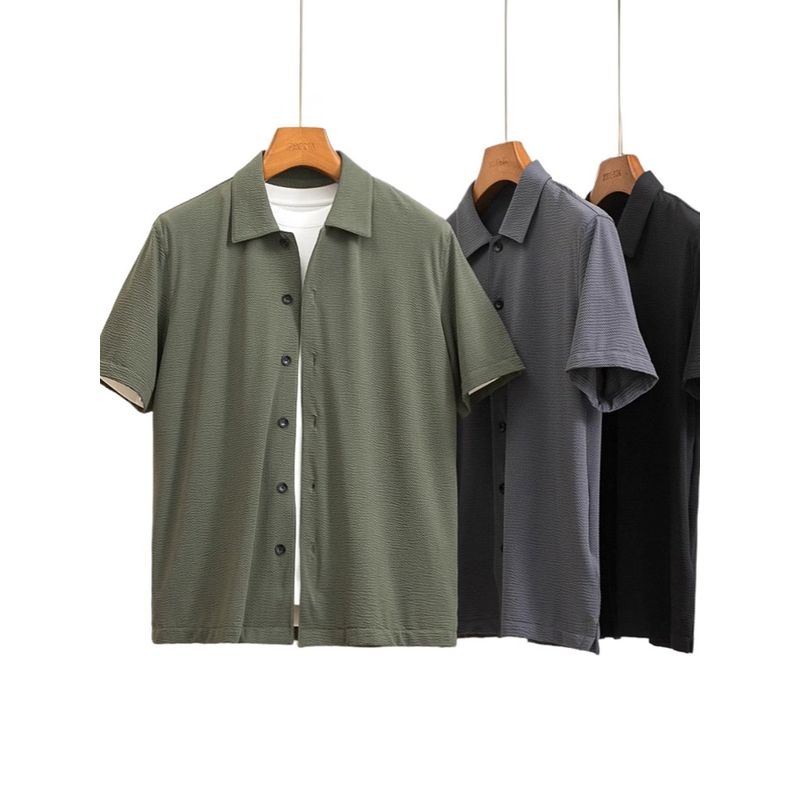 Young Seersucker Shirt Men's Short-Sleeved Summer Outdoor Lightweight Quick-Drying Ice Silk Cool Feeling Outwear Export Men's Shirt