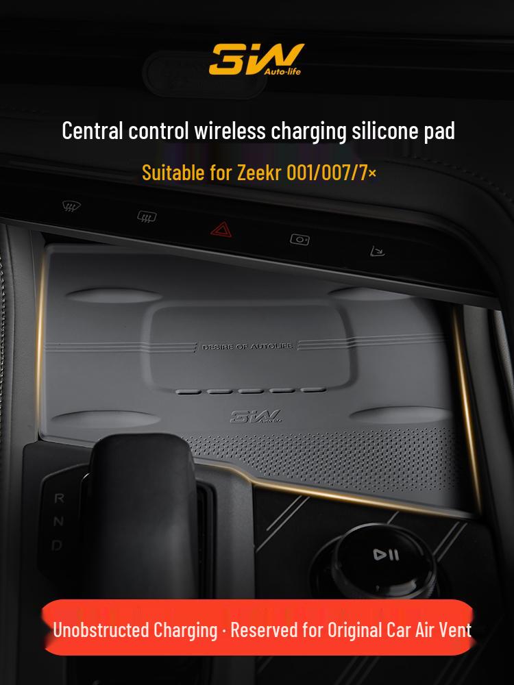 3W Non-slip Wireless Charging Silicone Pad for Zeekr 001/007/7X Center Console.