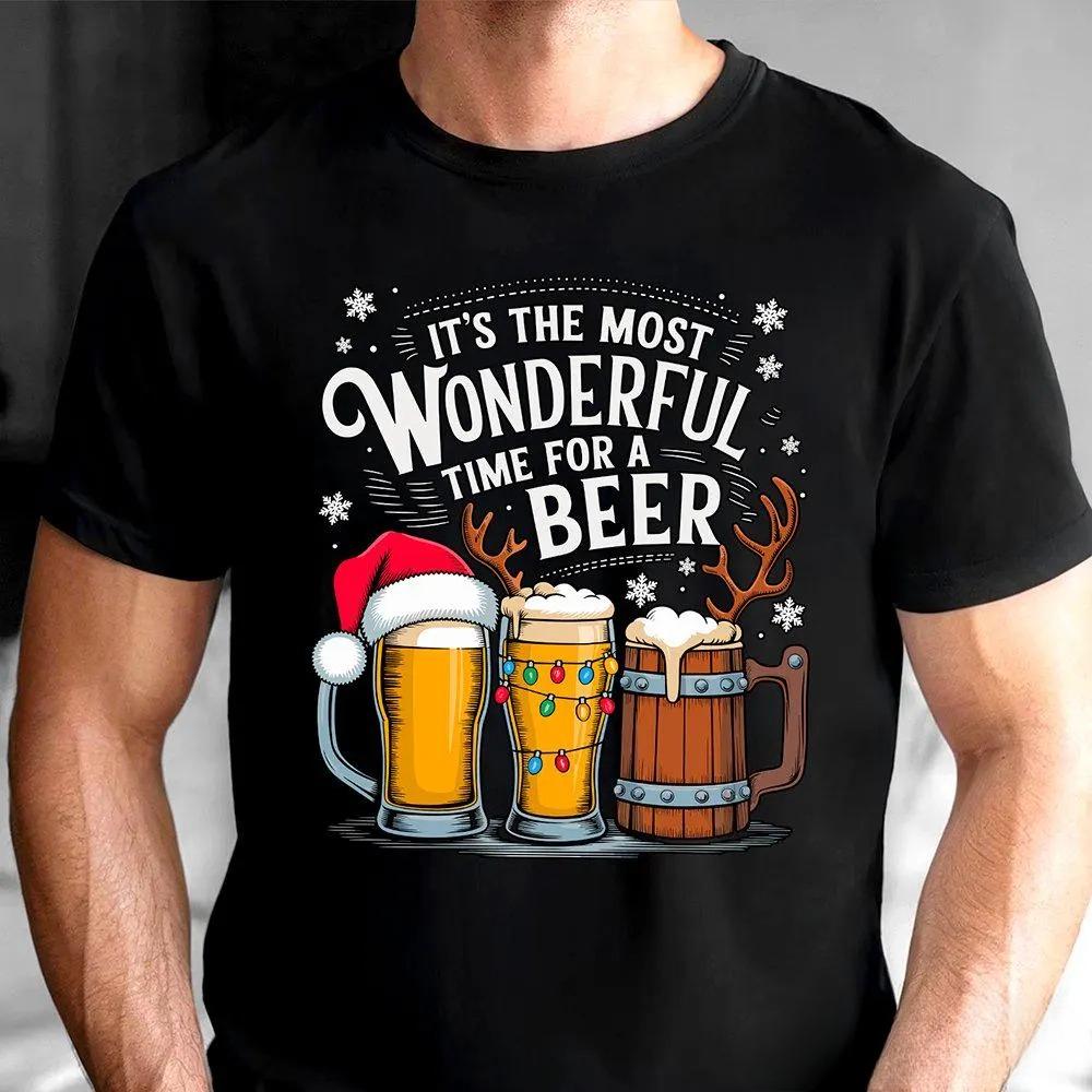 Its The Most Wonderful Time for a Beer TShirt Funny Holiday Beer Christmas Tee casual fashion Oversized streetwear Tshirts Top