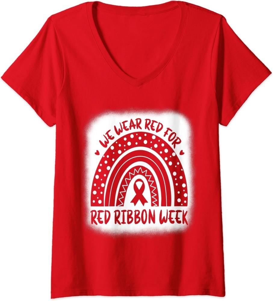 Red Ribbon Week We Wear Red Ribbon Week Awareness Ladies' V-Neck Tshirt Unisex T-Shirt