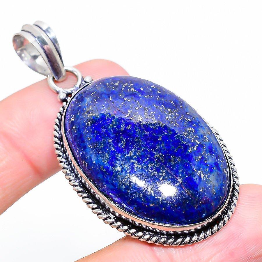 Lapis Lazuli Gemstone 925 Silver Jewelry Pendant 2.29"